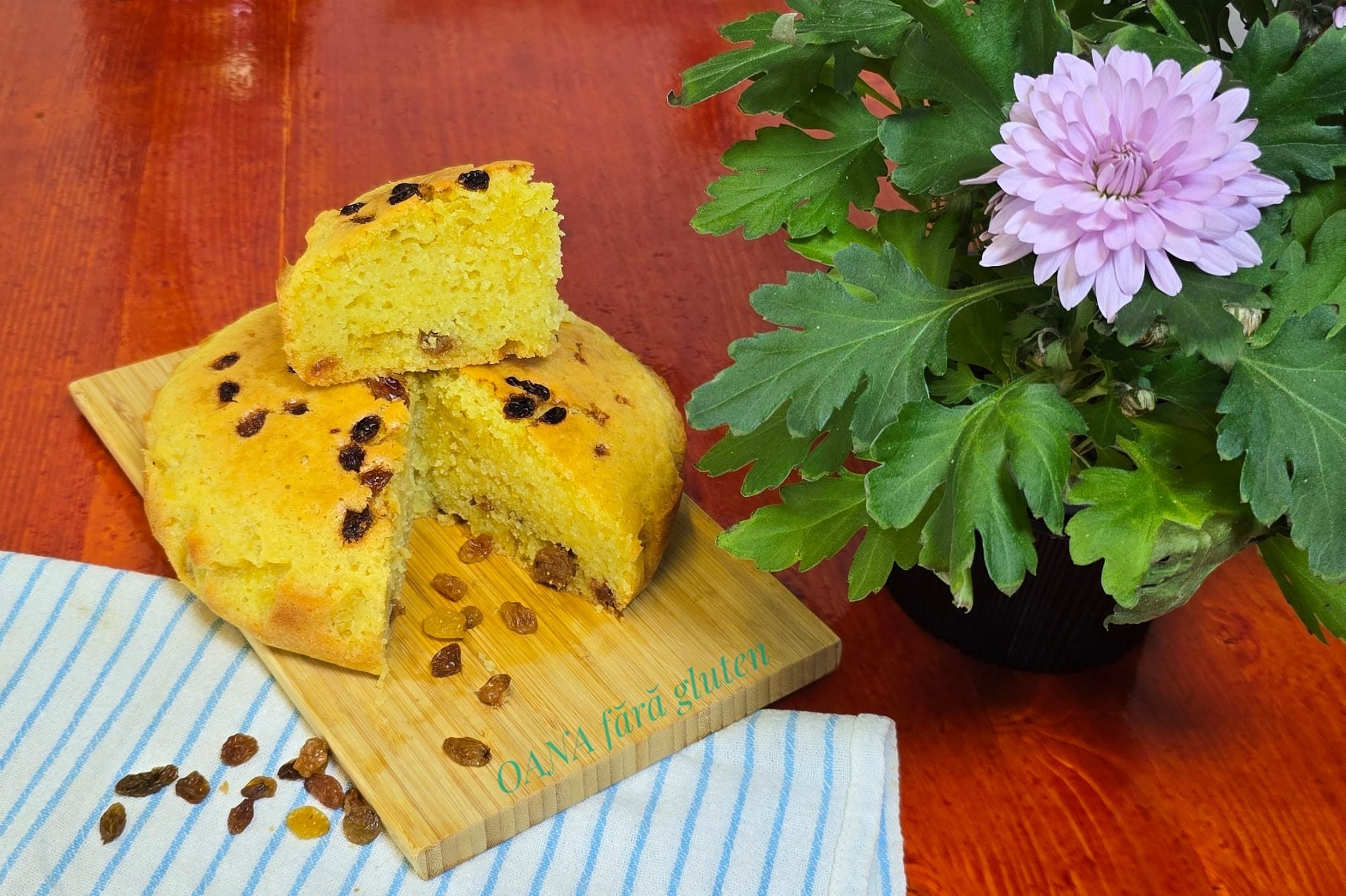 Am modificat cantitățile și aromele, astfel încât rezultatul să fie mai cremos la interior, și am copt-o într-o tavă rotundă, ca să semene mai mult cu o pască.