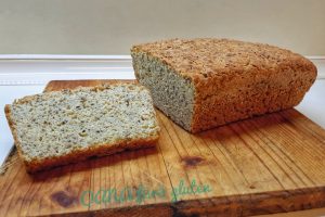 Aceasta este o pâine cu semințe densă, neelastică, dar foarte gustoasă și care se face extrem de simplu. Nu conține tărâțe de psyllium, așa cum au toate celelalte pâinici ale mele, ca de exemplu asta sau asta. Tărâțele de psyllium conferă pâinii...Pâine fără gluten, din făinuri de mei, tapioca și migdale